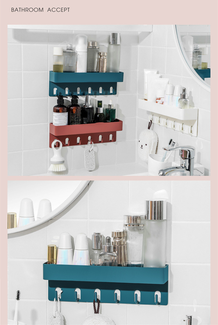 Wholesale Household Multifunction Punch-free Seamless Storage Holders Kitchen Storage Rack With Hook Rack Bathroom Storage Rack